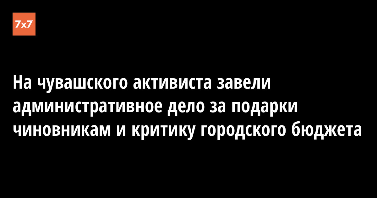На чувашского активиста движения «Открытая Россия» Юрия Сидорова составили два протокола об административном нарушении за то, что он дарил подарки местным чиновникам и критиковал чрезмерные траты бюджета на содержание бюрократического аппарата. Об этом он 21 января рассказал «7x7».