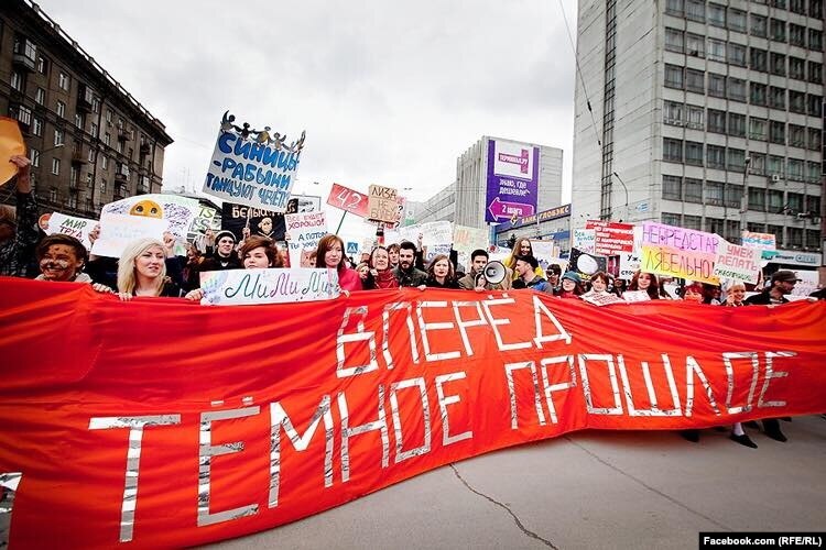 Монстрация – первомайское театрализованное шествие под абсурдными лозунгами. В 2018 году в Новосибирске оно состоялось в 15-й раз, всего акции были запланированы в 22 городах России. Участие в традиционной акции приняли тысячи человек.