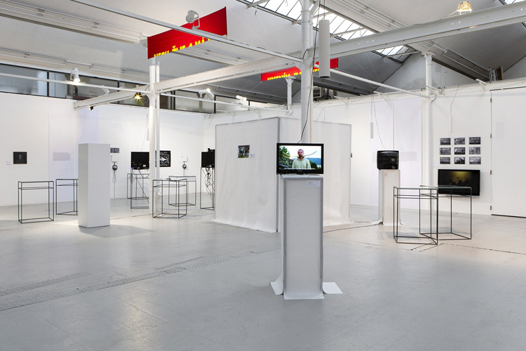 Гланц: Для выставки в Shedhalle группа молодых архитекторов из Праги придумала оформление целиком из бумаги. Семь прозрачных конструкций и белых кубов организуют пространство помещения, берут на себя функцию посредников между посетителями и поэзией. Подходя к ним или заходя в них, можно спокойно смотреть и слушать видеозаписи. Мы сознательно оставили пустой середину выставочного пространства. Если встать в центре выставочного зала, то можно услышать доносящиеся со всех сторон из динамиков обрывки слов и звуков. Поэзию, написанную чернилами, краской или даже кровью, можно увидеть и на стенах, на фотографиях, на прочих выставленных объектах. Наша выставка — это work in progress, благодаря которой мы постоянно приобретаем новые знания, имеем возможность работать с поэтами, художниками, кураторами и специалистами из самых разных стран. И, конечно же, вместе с выставкой мы путешествуем и пытаемся для каждого места создать ее уникальный вариант: после выставочных площадок в Словакии, Сербии и Швейцарии она будет показана в Дрездене, где мы хотим представить кроме прочего и больше экспонатов из бывшей ГДР. В большой либерецкой галерее, построенной во времена Австро-Венгерской монархии как бассейн и баня, мы покажем выставку тоже в несколько измененном и расширенном виде — за углом от легендарной радиостудии, где записывался «Семестр экспериментального творчества».