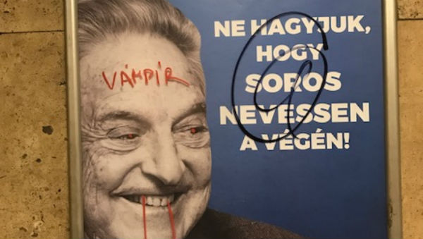 На миллиардера-филантропа Сороса идеально проецируются стереотипы о всемогущей мировой закулисе, безжалостном еврейском финансовом капитале и тому подобные. С июля 2017 года вся страна была обклеена плакатами с надписью "Стоп Сорос". На плакатах были разные тексты и мотивы, но все они выражали одну идею: Сорос хочет разрушить Венгрию, а для этого завозит в нее мигрантов и насаждает либерализм.