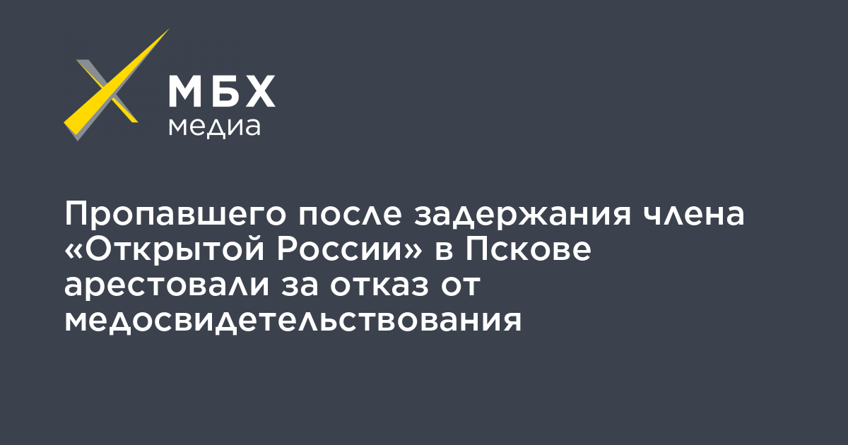 Пропавшего после задержания члена «Открытой России» в Пскове арестовали за отказ от медосвидетельствования