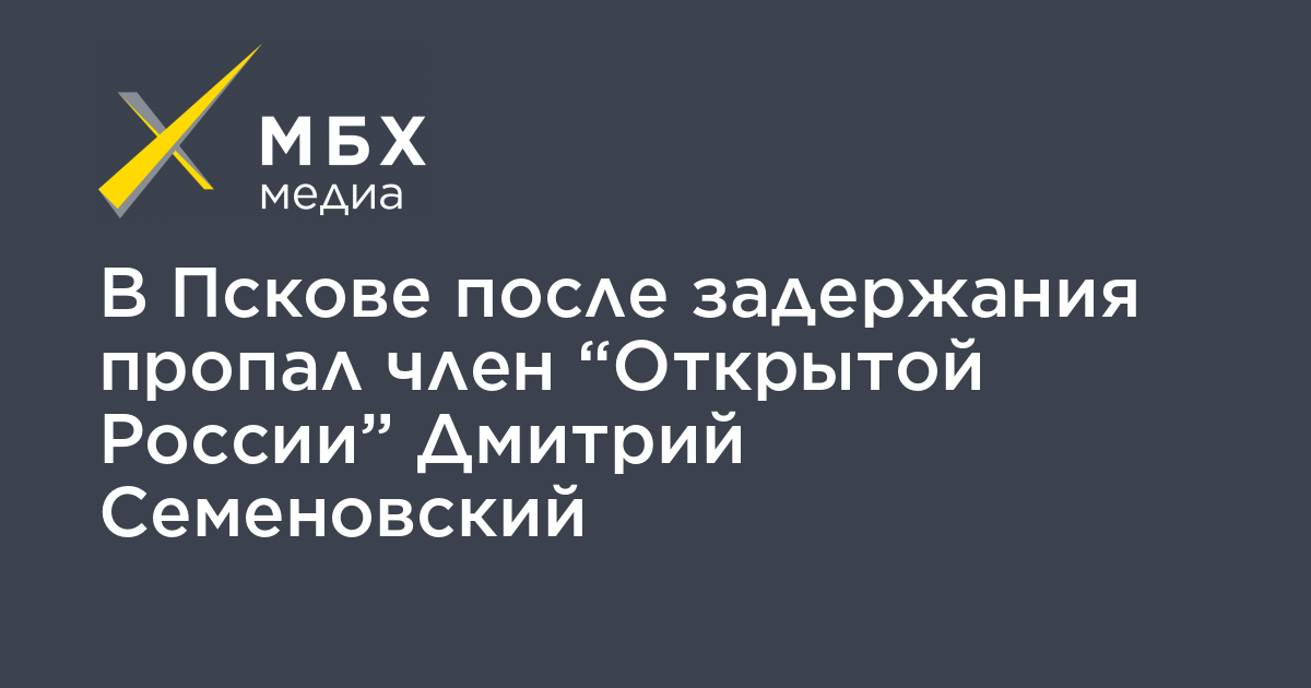 Псковский член «Открытой России» Дмитрий Семеновский пропал после задержания силовиками. Об этом «МБХ медиа» сообщил член совета «Открытой России» Александр Захаров.