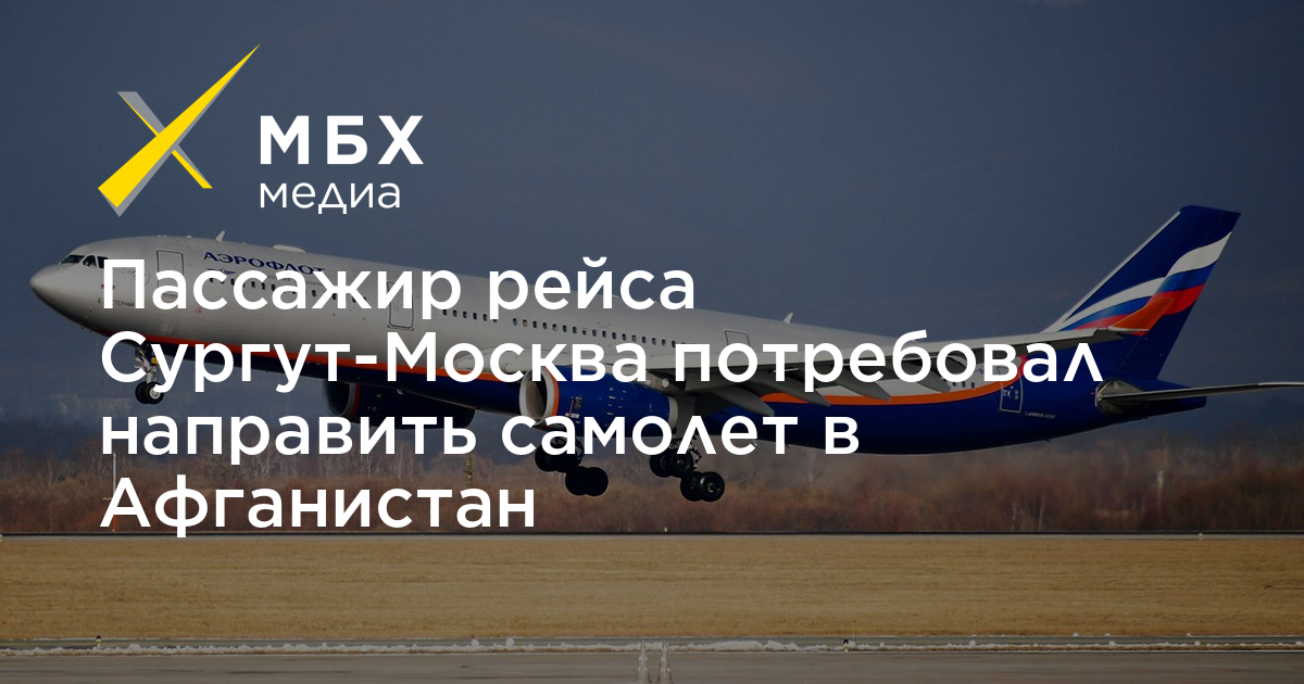 Один из пассажиров авиарейса «Аэрофлота» Сургут-Москва во время полета потребовал развернуть лайнер и направить его в Афганистан. Об этом сообщает «Интерфакс» со ссылкой на источник в авиадиспетчерских службах.