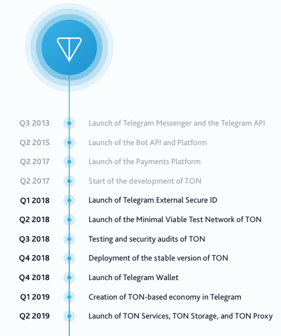 • Команда, работающая над TON, готова к полному запуску в начале 2019 года, хотя возможна небольшая задержка в 2–3 месяца из-за «инновационной природы разработки».