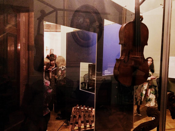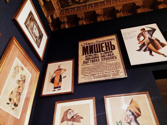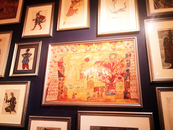 © Надя Плунгян «100+10». Фрагмент экспозиции со сквозными витринами для музыкальных инструментов Решение спорное, если учесть, что на зрителя разом обрушиваются десятки работ совершенно разных авторов: Врубеля и Кустодиева, Судейкина и Билибина, Бенуа и Стеллецкого, Сомова и Челищева, Якулова и Чехонина. Классика русского символизма и модерна поддержана авангардом — можно выделить, например, гравированный эскиз Веры Ермолаевой и литографии Эль Лисицкого к опере Крученых «Победа над Солнцем» (1920), а также композицию Любови Поповой к спектаклю Анатолия Луначарского «Канцлер и слесарь» (1921). Отдельно отмечу эскизы костюмов Льва Бакста к дягилевским балетам (1910—1911), таинственно-голубой город Натальи Гончаровой для финала «Жар-птицы» (1926) и остроумный скетч Михаила Ларионова «Сергей Дягилев на репетиции» (1927). Невероятно, но на одной из боковых стен этого зала еще и проигрывается видеоинтервью самой Нины Лобановой-Ростовской, в котором она рассказывает историю собрания.