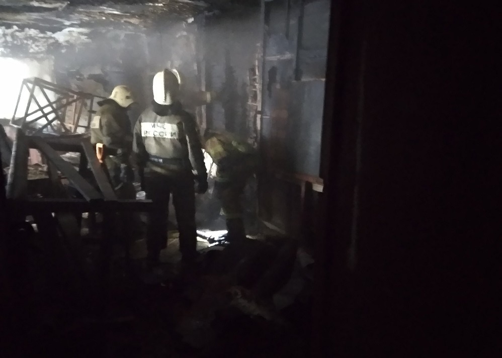 Пожарные на месте прогара пола в мастерской Николая Самойленко. Фото: Алексей Семёнов.