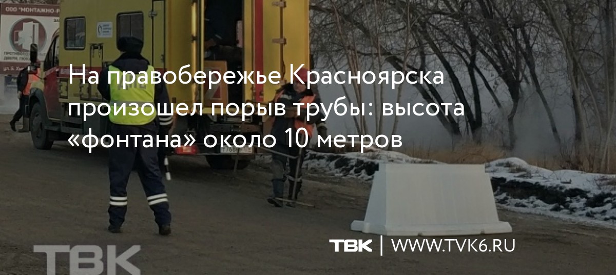 На правобережье Красноярска произошел порыв трубы: высота «фонтана» около 10 метров