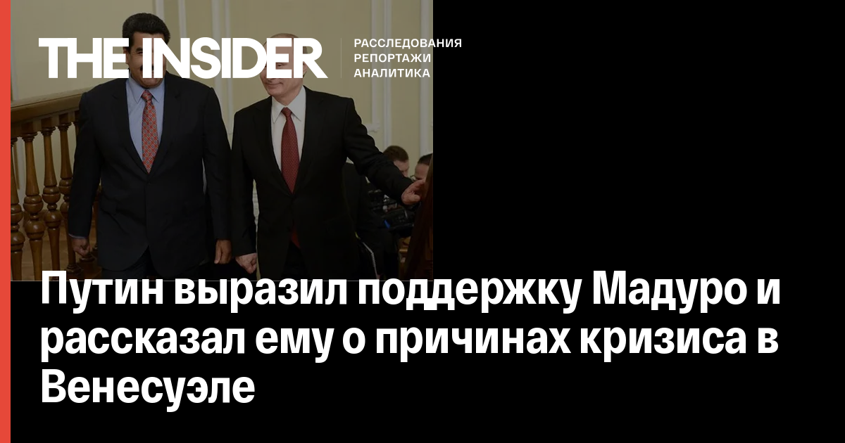 «Президент России выразил поддержку законным властям Венесуэлы в условиях спровоцированного извне обострения внутриполитического кризиса. Подчеркнул, что деструктивное внешнее вмешательство грубо попирает основополагающие нормы международного права. Высказался в пользу поиска решений в рамках конституционного поля и преодоления разногласий в венесуэльском обществе путем мирного диалога», — говорится в сообщении пресс-службы.
