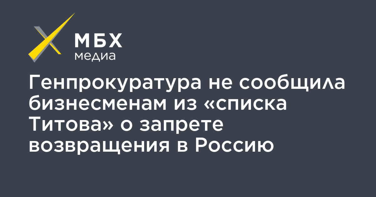 Генпрокуратура не сообщила бизнесменам из «списка Титова» о запрете возвращения в Россию