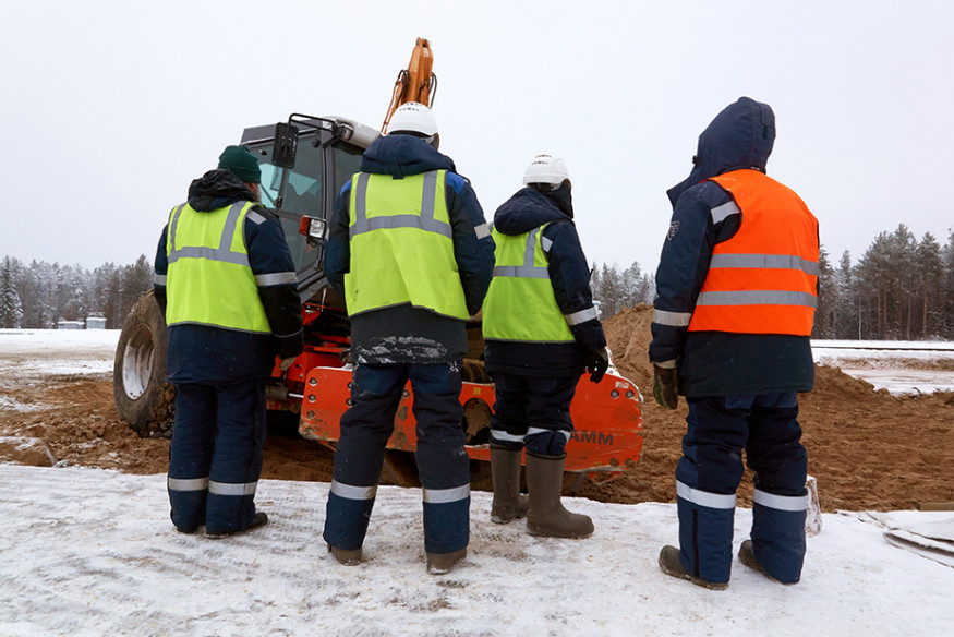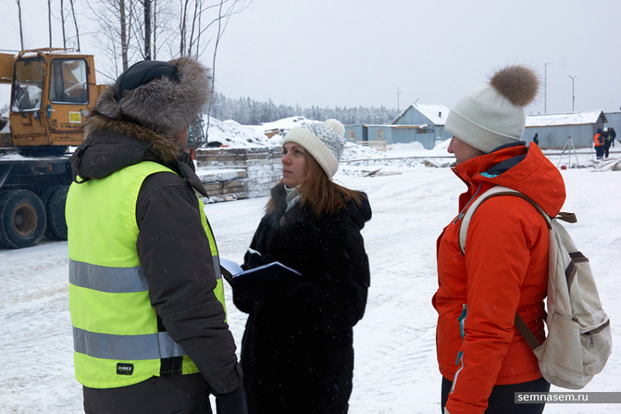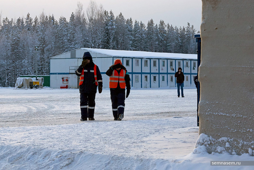 Рабочие и охранники говорят с активистами неохотно. Молодые люди из Санкт-Петербурга рассказали, что строят здесь водоочистные сооружения, получают больше 50 тыс. руб. в месяц.