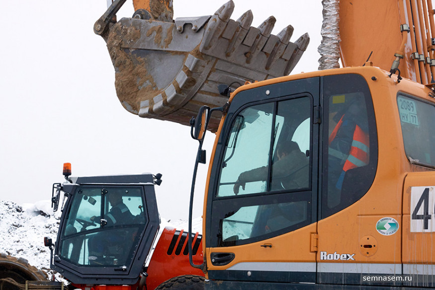 По территории строящейся погрузочно-разгрузочной площадки представители управления Ростехнадзора области ходили вместе с «хозяином свалки», как назвали его активисты, — руководителем стройки, представителем московского ГБУ «Автомобильные дороги» Максимом Михайловым. Охранники разрешили им пройти без касок, потому что на мужчине был жилет.