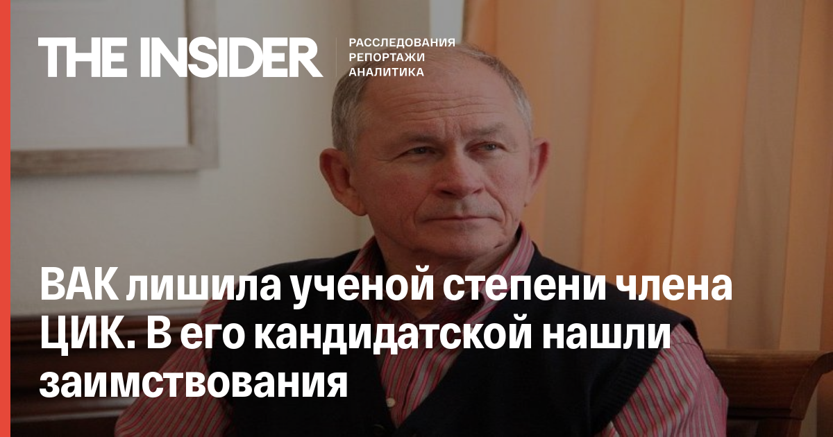 ВАК лишила ученой степени члена ЦИК. В его кандидатской нашли заимствования