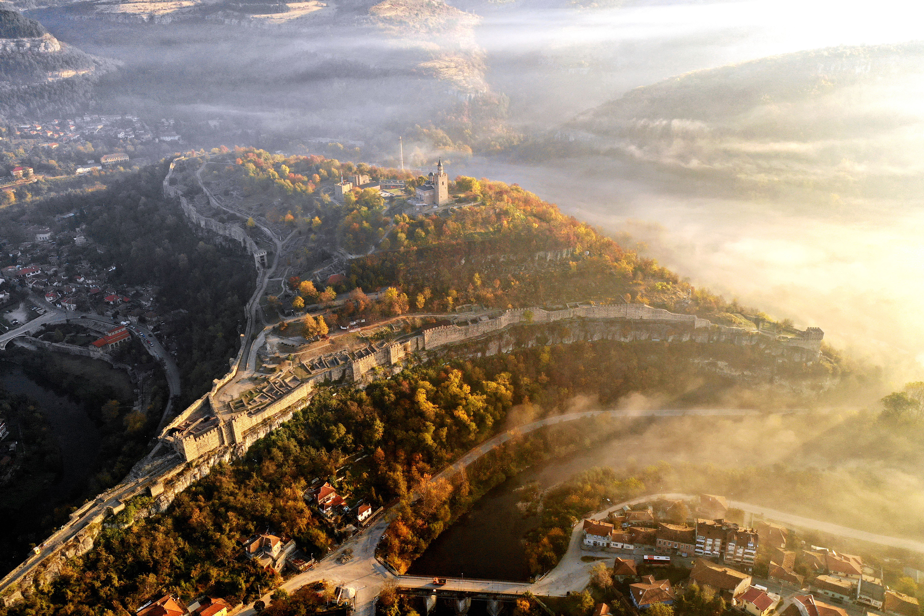 Крепость в Велико-Тырнове в дымке утреннего тумана. Этот город когда-то называли Третьим Римом (после Константинополя) за то влияние, которое он оказал на культуру Восточной Европы.