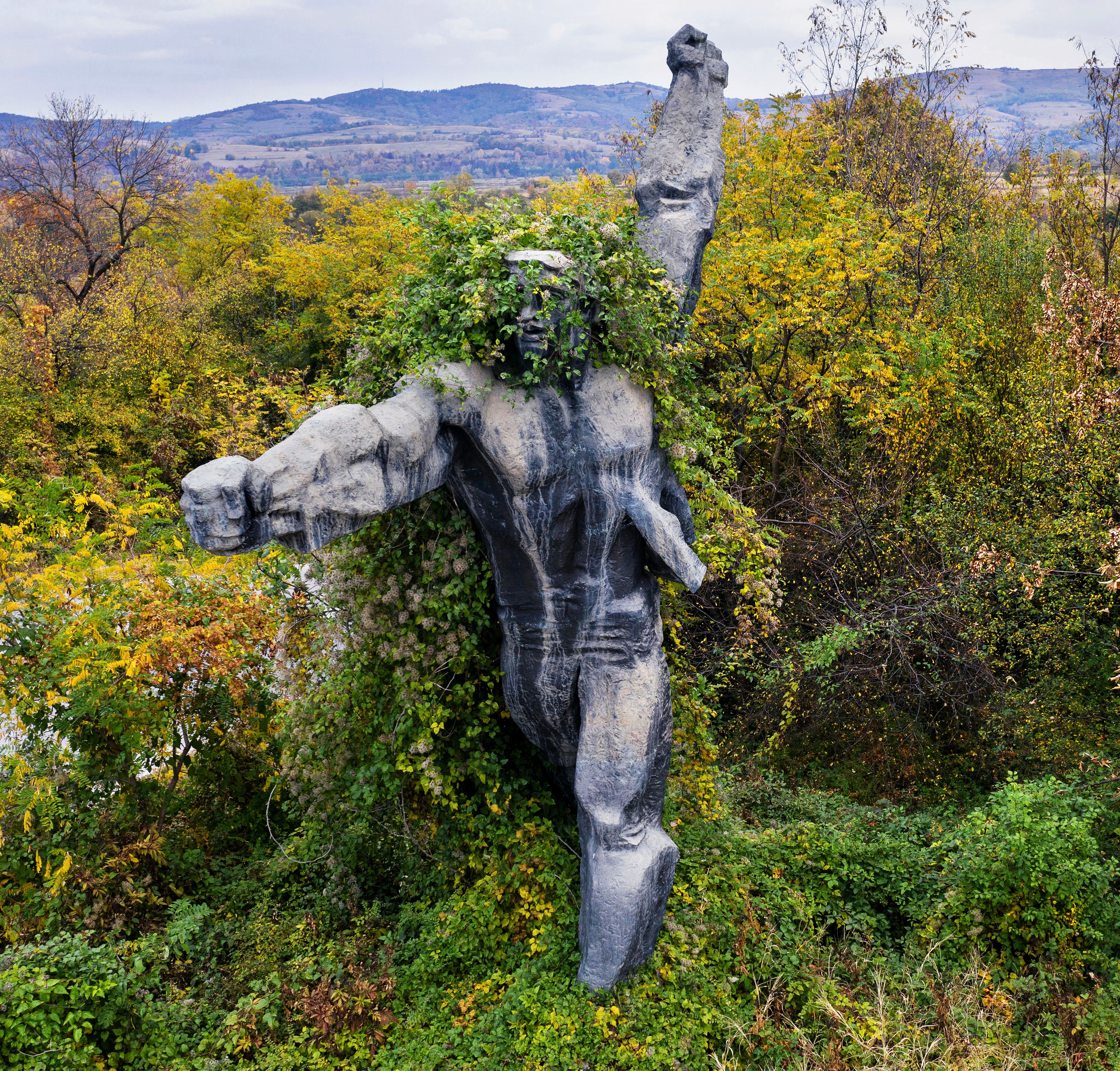 "Забытый коммунист". Творение социалистической эстетики недалеко от дороги медленно поглощается бурной растительностью.