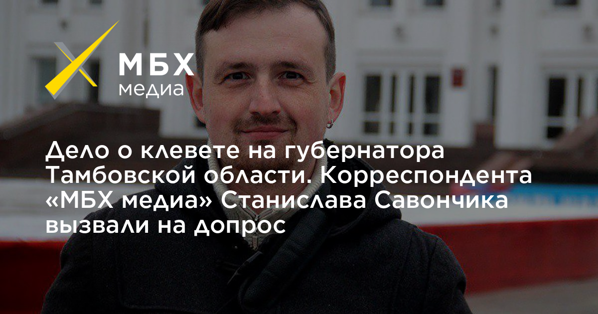 Дело о клевете на губернатора Тамбовской области. Корреспондента «МБХ медиа» Станислава Савончика вызвали на допрос