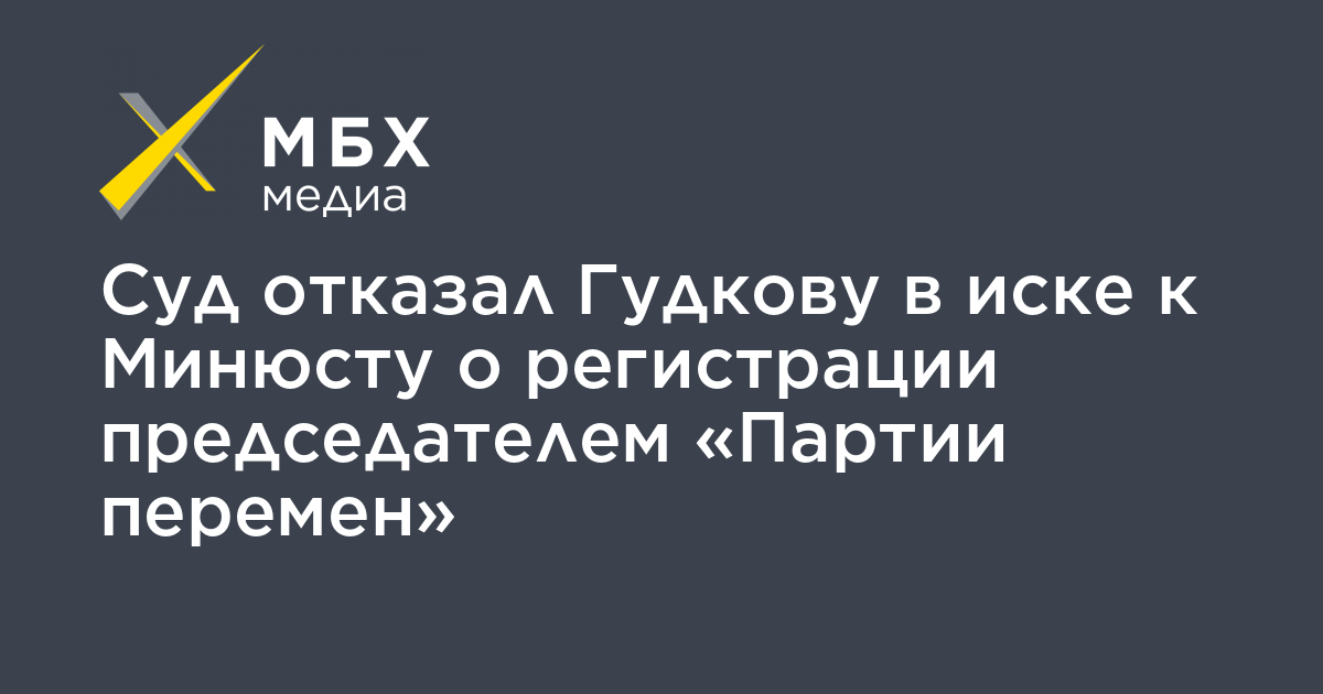 Замоскворецкий суд Москвы отказал лидеру «Партии перемен» (бывшая «Гражданская инициатива») Дмитрию Гудкову в иске к Минюсту, который не зарегистрировал политика председателем партии. Об этом «МБХ медиа» сообщил пресс-секретарь Гудкова Алексей Обухов.