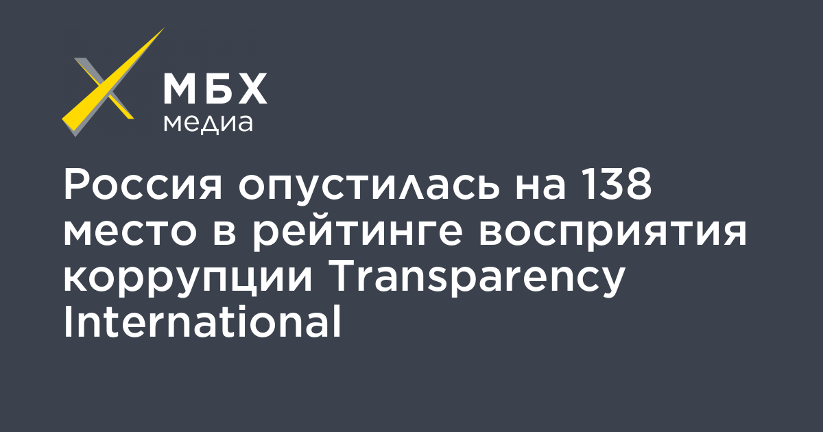 Россия опустилась на 138 место в ежегодном рейтинге восприятия коррупции, составленном движением Transparency International.