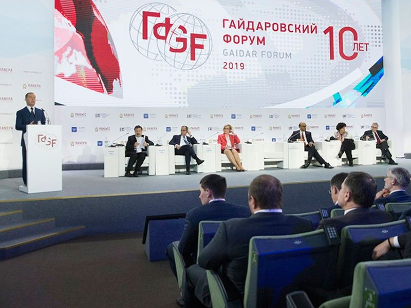 Ключевым событием завершившегося форума стала пленарная сессия «Национальные цели развития и глобальные тренды» с участием Председателя Правительства РФ Дмитрия Медведева. Выступление премьер-министра в значительной степени было посвящено гуманитарным проблемам. Впервые именно здесь, с трибуны Гайдаровского форума из уст Дмитрия Медведева прозвучал тезис о необходимости гуманитарной экспертизы экономического законодательства.