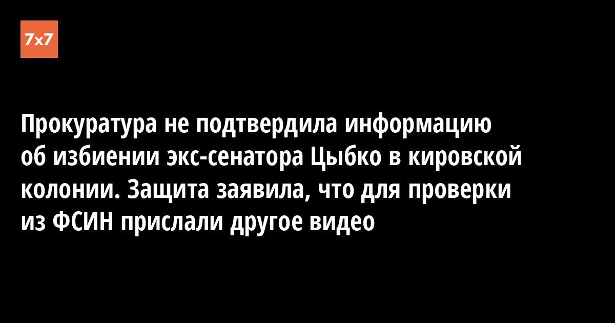 Прокуратура Кировской области 30 января сообщила, что заявления в СМИ об избиении в исправительной колонии №11 осужденного экс-сенатора Челябинской области Константина Цыбко не подтвердились. Адвокат Цыбко Анатолий Дмитриев сказал «7x7», что для проверки из колонии якобы прислали видео с другого ракурса, с которого избиение рассмотреть нельзя.