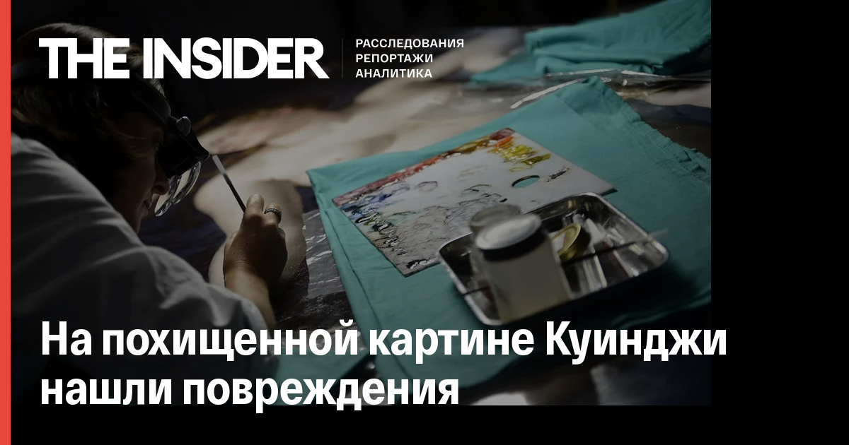 Похищенной картине Куинджи в результате кражи был нанесен незначительный ущерб в виде потёртостей, он будет устраняться специалистами. Об этом заявили в Минкультуры.