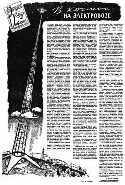 В 1960 году Арцутанов под впечатлением от космических достижений выдвинул концепцию тросовой системы, с помощью которой можно было бы выводить грузы на высокую околоземную орбиту без использования ракет на химическом топливе. Хотя сама по себе идея «башни до небес» рассматривалась еще основоположниками космонавтики, она считалась слишком фантастической, поскольку элементарный расчет показывал, что при существующих материалах трос, спущенный с геостационарной орбиты к поверхности Земли (протяженностью 35 тыс. км), просто оборвется под собственным весом. Юрий Николаевич решил, что трос можно сделать не постоянного, а переменного сечения. В интервью автору этих строк он сообщил подробности своего «озарения»: Мой друг, большой специалист в пластмассах, рассказал как-то, что изготовили очень прочный материал — прочность его превышает всё ранее созданное. Обычно величина прочности канатов определяется максимальной длиной каната, при которой он начинает рваться под собственным весом. Так вот, для этого материала такая разрывная прочность составляет 400 км. У меня тогда возникла забавная мысль: на высоте 400 км сила тяжести меньше, а значит, вес каната будет меньше, и его можно будет сделать больше, удлинить. Шутки ради начал считать. И в процессе стало интересно, а какой должна быть прочность каната, чтобы другой его конец довести до области с нулевой силой тяжести, до точки равновесия. Оказалось, что это настолько астрономическая цифра, абсолютно невозможно такое реализовать. Но раз уж такая странная идея пришла в голову, то совершенно необязательно делать канат постоянного сечения, а можно делать, например, равнопрочного сечения — то есть по мере подъема делать его всё толще и толще, чтобы он выдерживал не только вес лифта, который поднимается по канату, но и вес всего свисающего вниз каната… Посчитал. И получилось, что связи между атомами в молекулах допускают такую прочность. Значит, теоретически подобный канат может быть построен. Кстати, почти сразу я узнал, что требуемая прочность уже есть — ее обеспечивают так называемые «усы металлов»! И вот однажды проездом в Москве я зашел в редакцию газеты «Комсомольская правда» и изложил свою идею редактору научного отдела (вероятно, М. В. Хвастунову. — А. П.). Тот позвонил на кафедру сопромата и спросил: это вообще реально? Профессор ответил: да, ничего в этом фантастического нет. И уже через неделю, 31 июля 1960 года, «Комсомолка» напечатала статью «В космос — на электровозе» о моем проекте космического лифта. Благодаря этой публикации приоритет в изложении первого инженерного проекта космического лифта Земля — Космос зафиксирован за мной. И за Россией…