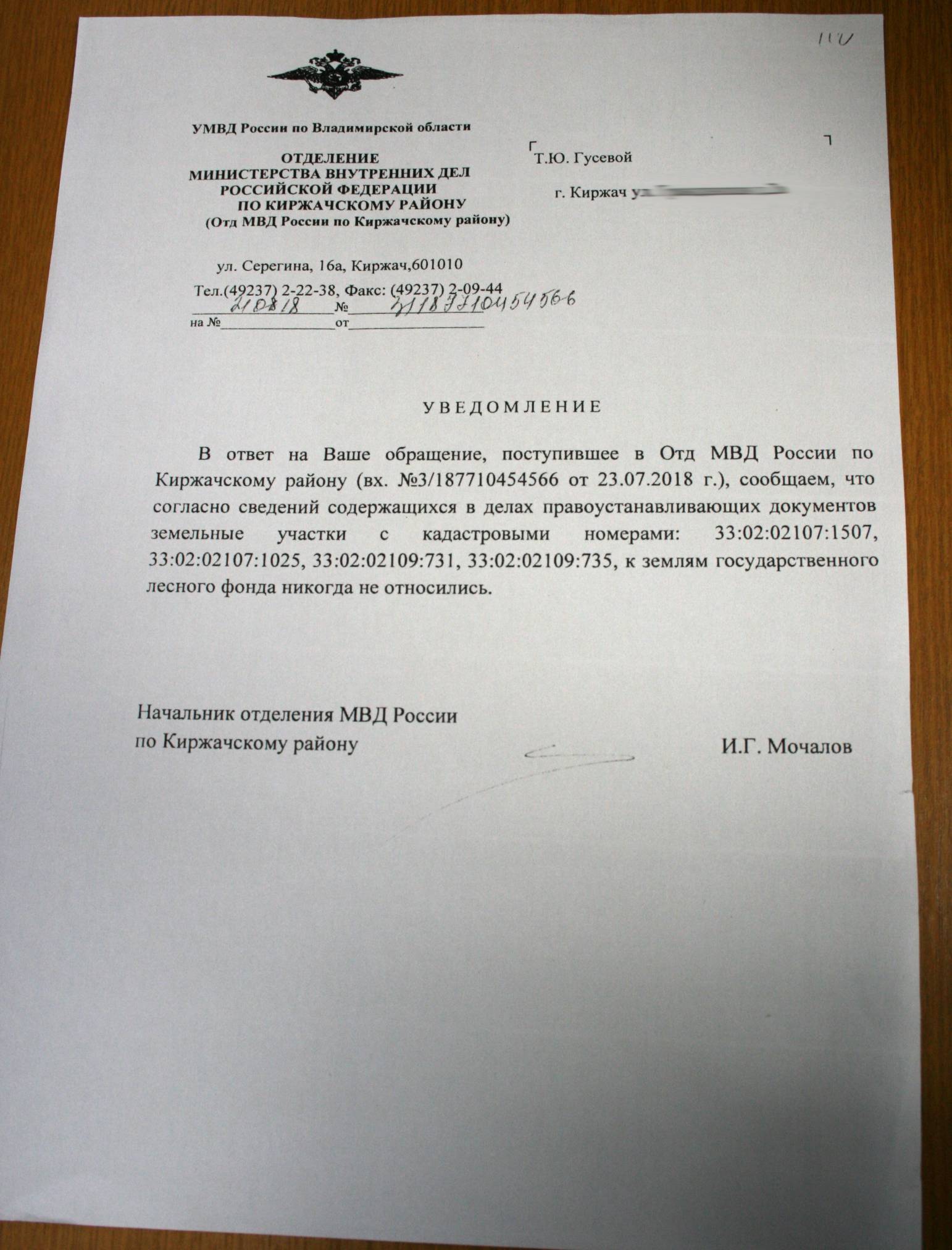 Активистам ничего не осталось, как обратиться в администрацию области. Лесной департамент усмотрел нарушения и признал, что земли являются лесными и попытка их продать частным лицам незаконна. После этого проснулась и Киржачская районная прокуратура, направив дело в суд.