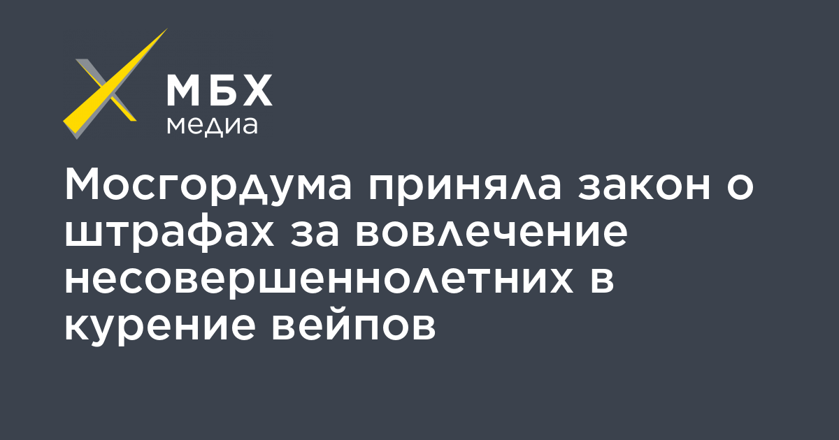 Мосгордума приняла закон о штрафах за вовлечение несовершеннолетних в курение вейпов, об этом сообщает «Интерфакс».