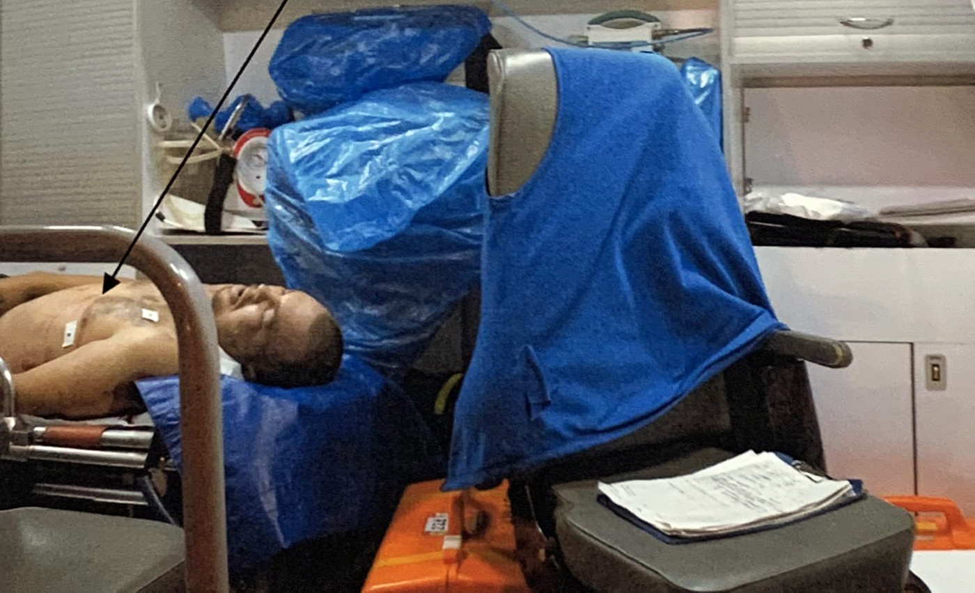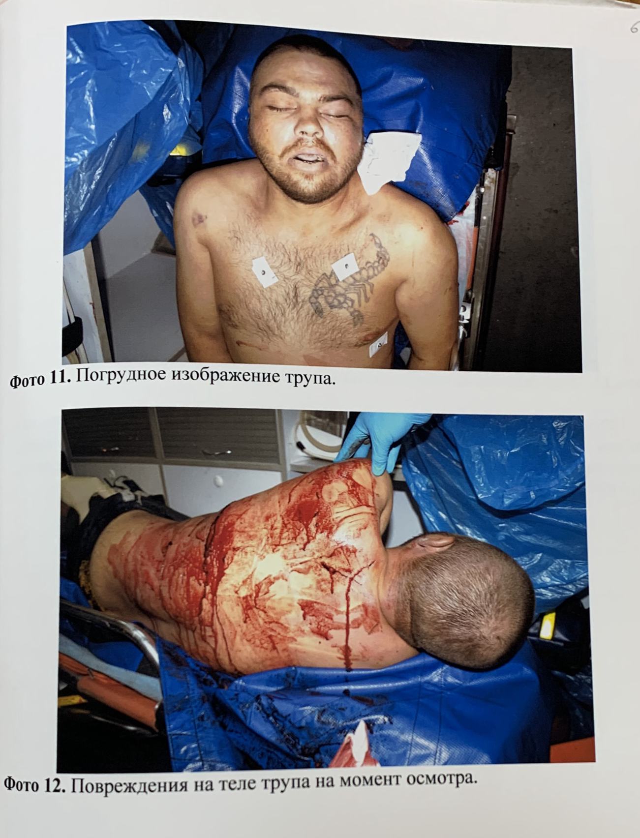 Согласно показаниям врача скорой помощи, пострадавшим был небритый коротко стриженый мужчина лет тридцати с татуировкой скорпиона на груди. В 21:37 приехавшие медики застали его в тяжелом состоянии, а в 22:03 наступила остановка дыхания и клиническая смерть. Через полчаса мужчина скончался в машине скорой помощи.