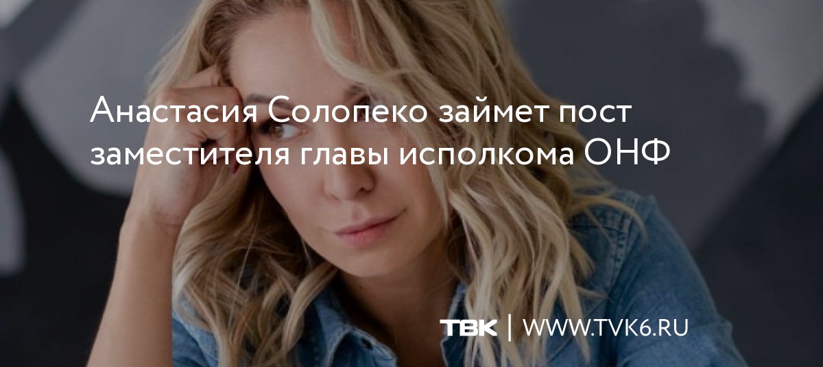 Экс-ведущая красноярской телекомпании «СТС-Прима» Анастасия Солопеко на новой должности будет курировать вопросы, связанные с информационной политикой, сообщает «Коммерсантъ». С 21 января она занимает должность советника главы исполкома ОНФ.