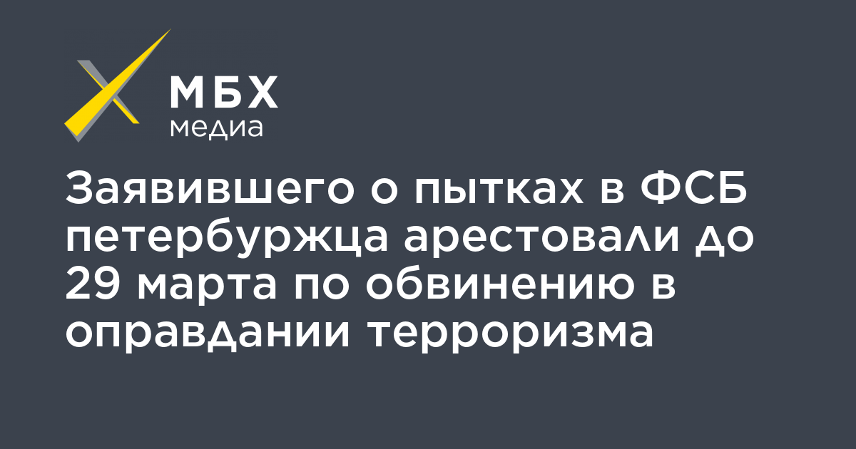 Заявившего о пытках в ФСБ петербуржца арестовали до 29 марта по обвинению в оправдании терроризма