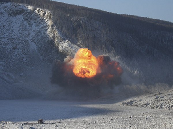 Как сообщил заместитель министра обороны РФ генерал армии Дмитрий Булгаков, для подрыва было использовано более 10 тонн тротила. В результате взрывных работ разрушена перемычка между проделанным каналом и верхними слоями воды, в образовавшуюся протоку пошла вода.