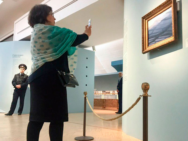Возвращенная картина Архипа Куинджи «Ай-Петри. Крым» / АГН Москва / фото: Юлия Годовникова Пейзаж «Ай-Петри. Крым» Архипа Куинджи вернулся на экспозицию Третьяковской галереи, откуда его похитили 27 января. Между тем смотритель галереи, находившаяся на выставке Куинджи во время похищения полотна художника, уволена по собственному желанию. В галерее заявили, что женщина «не собралась и не выполнила служебные обязанности, чтобы вести себя как необходимо в той ситуации».