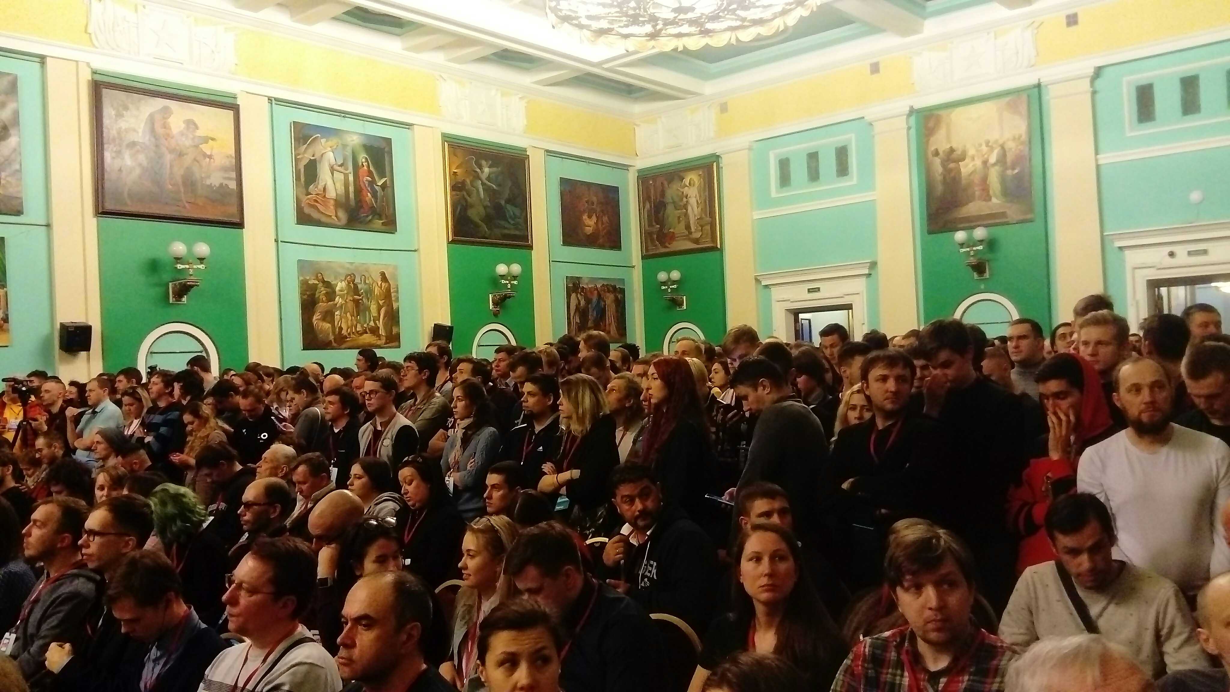 Как сообщает корреспондент «Бумаги», на встречу пришли около 550 человек. При этом организаторы сообщают, что в зале собрались более 700 человек.