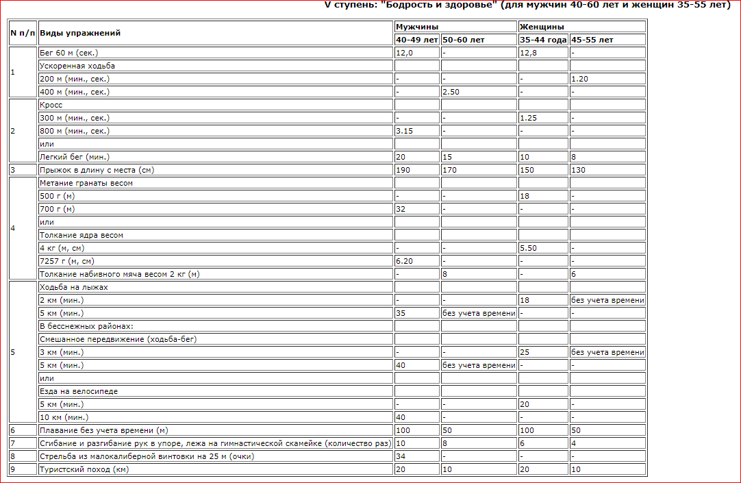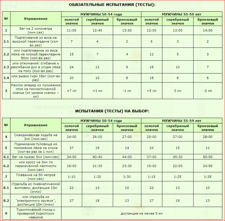 Меня интересует 5-я ступень советского комплекса (от 40 до 60 лет) и нынешняя — девятая (от 50 до 59 лет).
