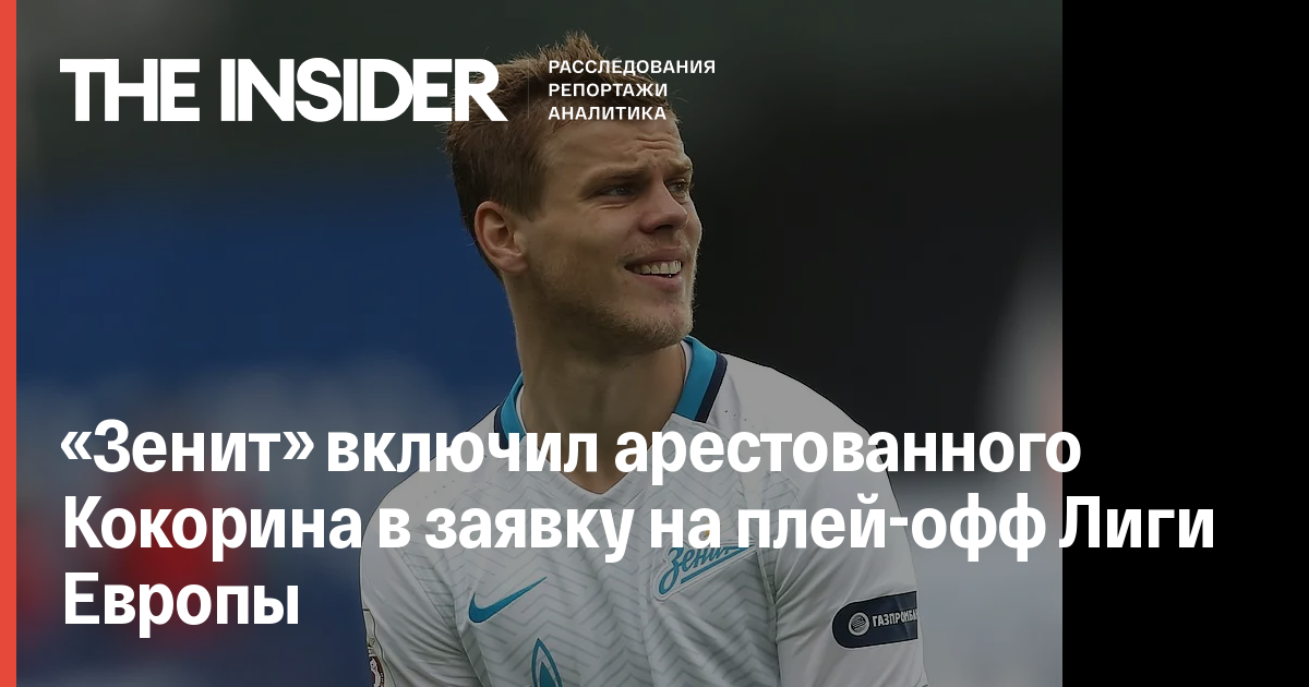 Футбольный клуб «Зенит» включил в заявку на плей-офф Лиги Европы нападающего Александра Кокорина. С середины октября он находится под арестом после участия в драках.