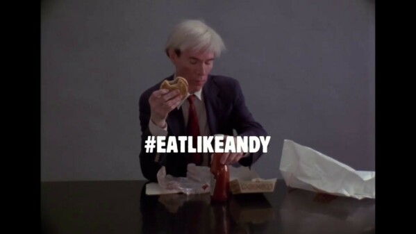 Ещё одну неожиданную рекламу сделал Burger King. Компания показала в эфире Супербоула 45-секундный ролик, где знаменитый художник Энди Урхол просто разворачивает и ест воппер. Уорхол умер в 1987 году: видео было снято за пять лет до этого для документального арт-фильма. Burger King почти год получал разрешение на использование кадров.