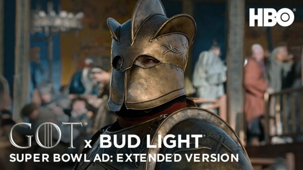 В рекламных блоках самым неожиданным получился ролик пивного бренда Bud Light. Обычно это пиво рекламируют с помощью коротких зарисовок про Средневековье и рыцаря Bud Light. Во время Супербоула всё шло по тому же сценарию, но затем прилетел дракон и принялся всех сжигать. Оказалось, что ролик — в том числе реклама «Игры престолов».