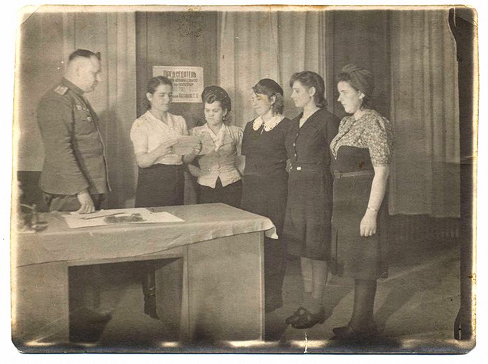 И приехала домой 19 февраля 47-го года. Во сколько. Дом сожгли немцы наш. Коровы забрали. Живут в землянке. Вот так. Папа четыре раза ранен был, где-то под Кёнигсбергом был он. Нас там тоже НКВД допрашивало, ещё в лагере. Уже ж дома тоже в прокуратуру надо было идти. Там тоже допрашивали. И на работу не устроишься как предатель Родины. А учиться уже поздно. Вот так и остались, неучёные и неграмотные. Только трудились.
