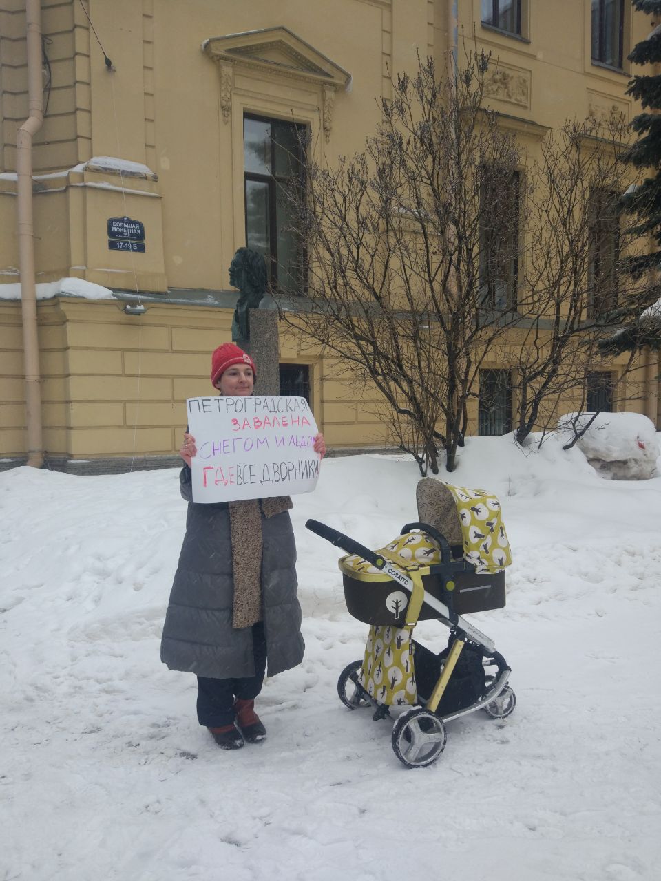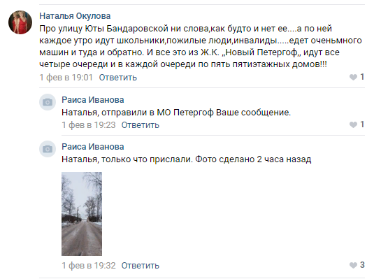 На странице администрации Петроградского района тоже не найти актуальных сообщений об уборке улиц. Жители жалуются на нее в комментариях к записям по другим темам и выходят к администрации с пикетами.