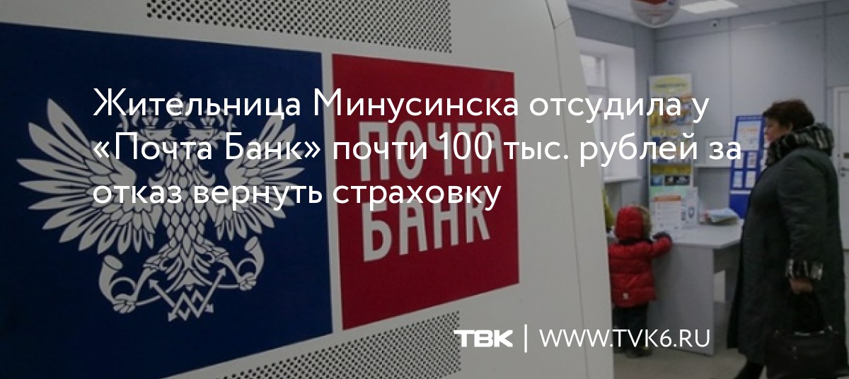 Жительница Минусинска отсудила у «Почта Банк» почти 100 тыс. рублей за отказ вернуть страховку