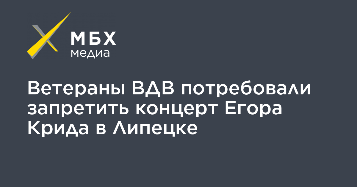 Общественная организация «Союз офицеров ВДВ и ветеранов боевых действий» написала заявление в прокуратуру и ряд других ведомств с требованием запретить концерт певца Егора Крида, который пройдет в Липецке 4 марта. Об этом «МБХ медиа» сообщила старший помощник прокурора области Татьяна Ткачева.