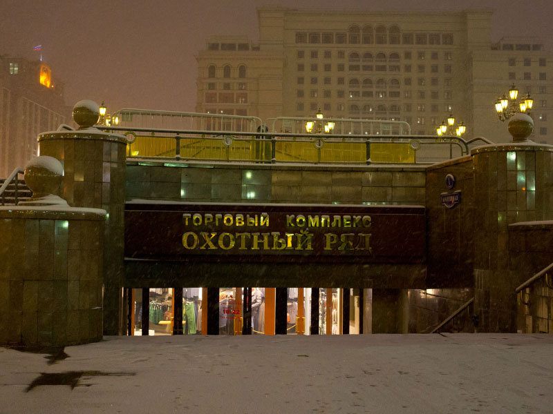 Торговый комплекс "Охотный ряд" расположен на Манежной площади в центре Москвы. Он был открыт в 1997 году и насчитывает три подземных и один надземный уровень, который представляет собой систему площадей-террас, соединенных лестницами и балюстрадами. По мнению многих архитекторов и градозащитников, надземная часть "Охотного ряда" нарушила ансамбль Манежной площади и восприятие окружающего пространства.