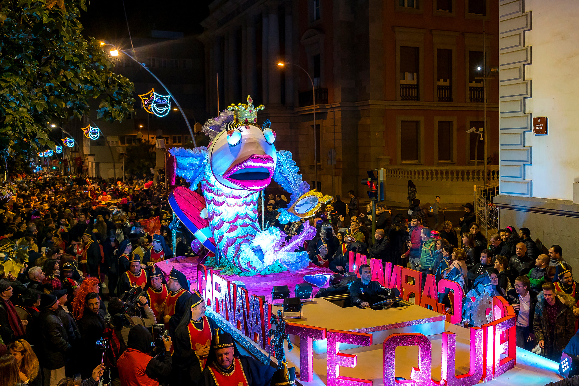 Карнавал на Тенерифе — не только про испанскую культуру. Классические персонажи, мелькающие на параде каждый год, родом из мировой поп-культуры, и вы их точно узнаете. Например, на карнавале обязательно будет Фидель Кастро, моряк Попай, множество персонажей «Звездных войн». Учитывая, что тема карнавала в этом году «Морские глубины», можно прогнозировать появление Аквамена.