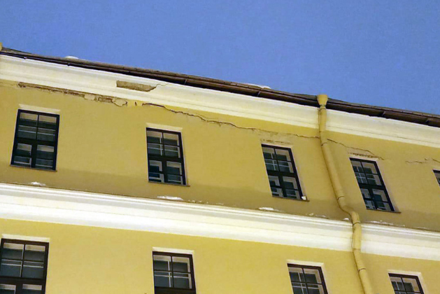 В здании петербургского Суворовского училища покосилась крыша и потрескался фасад. На его реконструкцию недавно потратили больше 6 млрд рублей