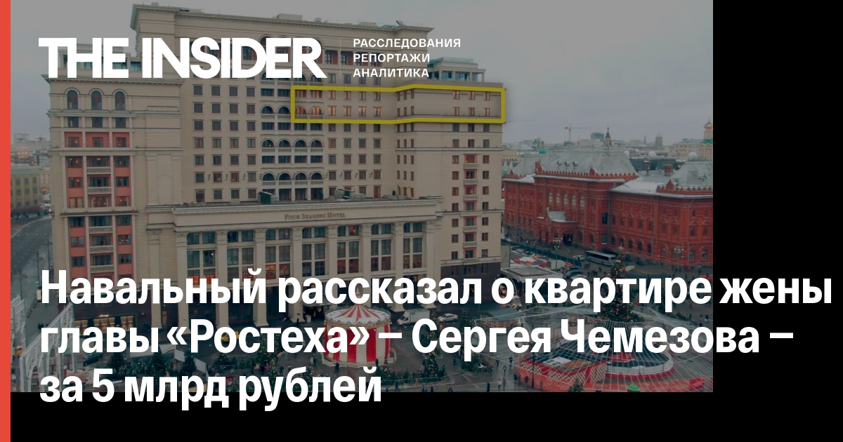 Навальный рассказал о квартире жены главы «Ростеха» — Сергея Чемезова — за 5 млрд рублей