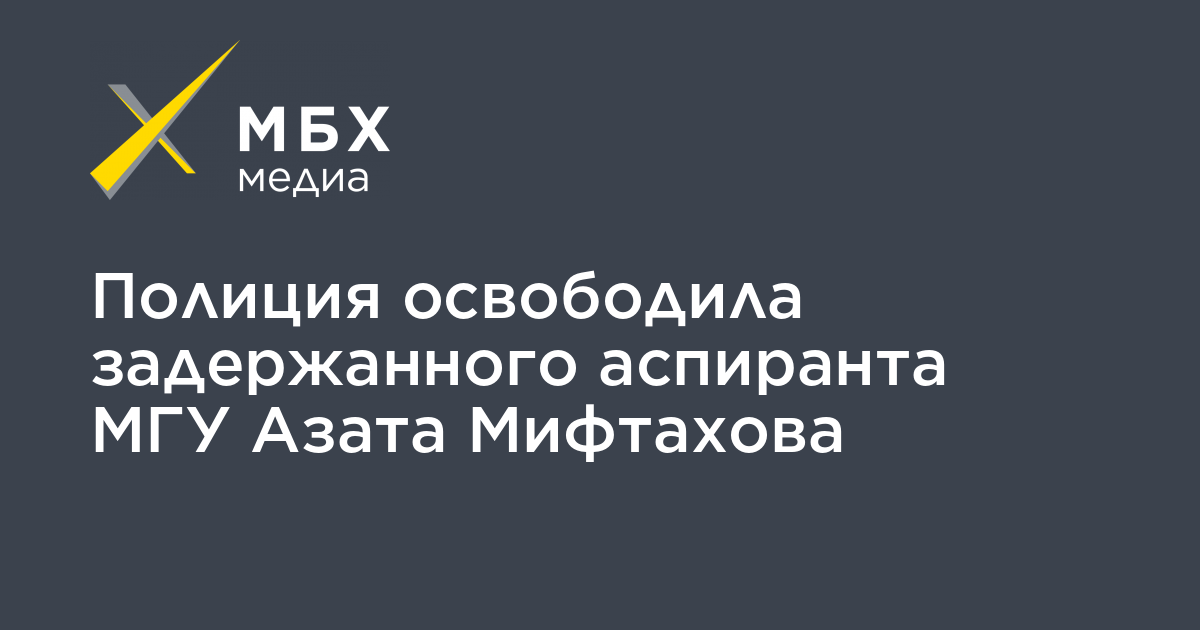 В Балашихе полиция освободила аспиранта мехмата МГУ Азата Мифтахова, задержанного по подозрению в изготовлении взрывного устройства, об этом «МБХ медиа» сообщила его адвокат Светлана Сидоркина.