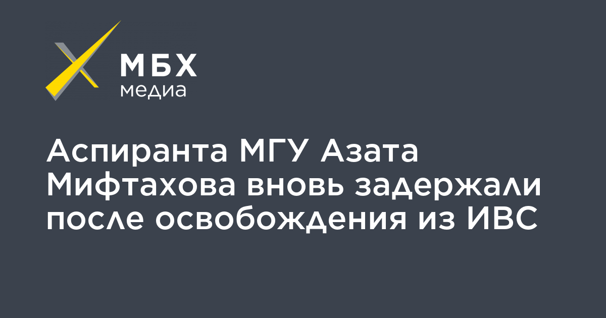 Аспиранта мехмата МГУ Азата Мифтахова, которого подозревают в изготовлении взрывного устройства, вновь задержали сразу после освобождения из ИВС. Об этом корреспонденту «МБХ медиа» рассказал дядя молодого человека Гадель Мифтахов.