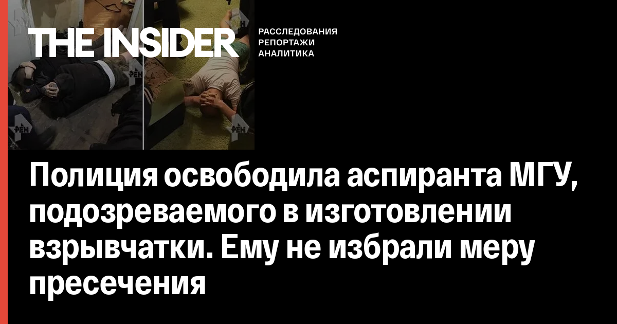 Полиция освободила аспиранта МГУ, подозреваемого в изготовлении взрывчатки. Ему не избрали меру пресечения