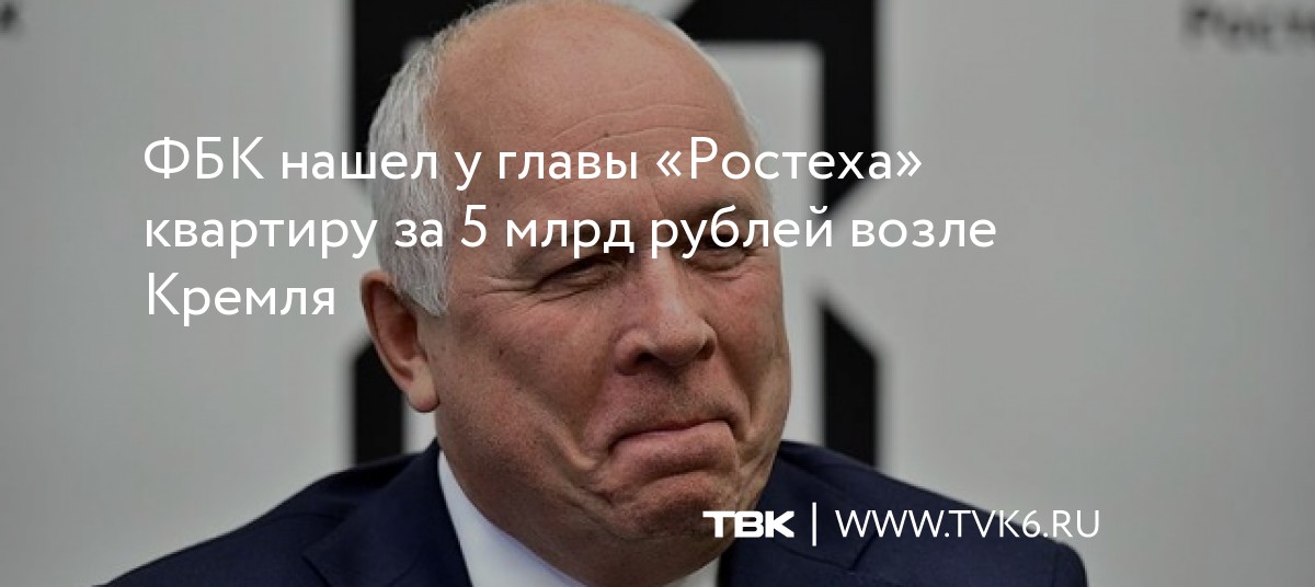 ФБК нашел у главы «Ростеха» квартиру за 5 млрд рублей возле Кремля