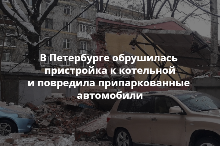 В Петербурге обрушилось заброшенное здание. Повреждены припаркованные рядом автомобили